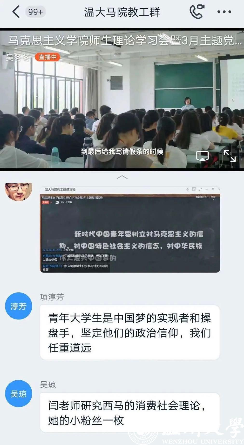 杏吧 马克思主义学院组织全体师生通过钉钉直播共同观看由教育部社科司指导,中教华影全国校园电影院线拍摄制作的纪录电影《一堂思政课》。该电影纪录一堂党的创新理论思政课、一堂回归经典思政课、一堂爱国主义教育思政课、一堂“强国有我”中学思政课、一堂生活思政课、一堂电影思政课、一堂“走出去”思政课、一堂思政大课,以娓娓道来的故事讲述,用影像化方式呈现了思政课坚持不懈用习近平新时代中国特色社会主义思想铸魂育人的深刻意义,多维度展示了思政课教学质量的全面提升和思政课老师的风采,在我院师生中引起热烈反响。