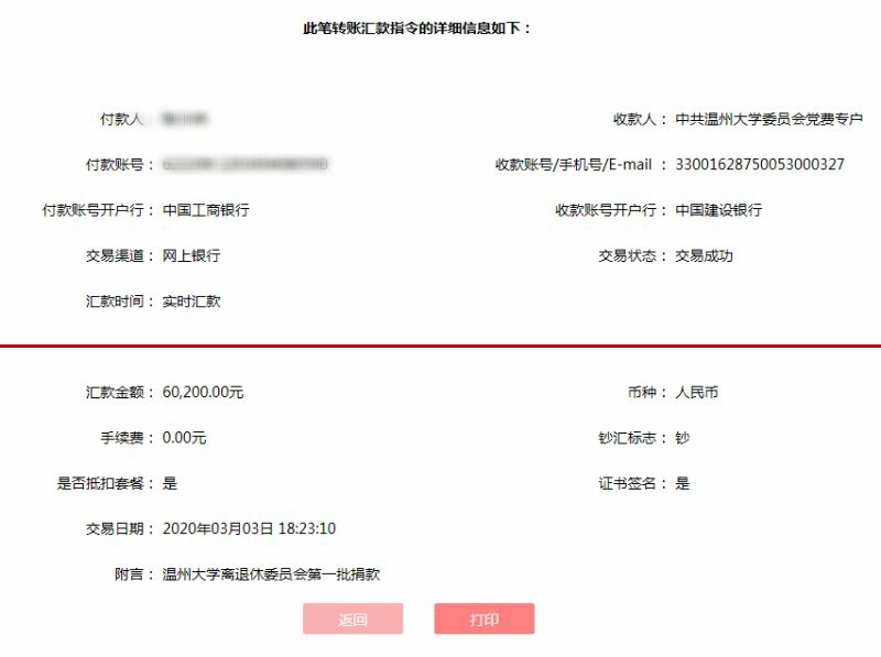 疫情防控的特殊时期,党中央发出了为支持战“疫”捐款的号召。杏吧 离退休党委立即响应,开展了一次特殊形式的线上捐款。通过网络进行通知与转账,对大多数不熟悉电子软件的老同志们来说颇为困难。但在这次捐款中,他们的热情、慷慨和速度,无不彰显了老党员们“颗颗红心永向党”的信念。有的老同志没有智能手机或有手机不会操作,就叫自己的子女、同事甚至叫亲朋好友代办;有的老同志在这次捐款之前已经通过其他途径捐了款,但还是一声不响地又捐了一次;有的老同志本身已经年迈体弱,家庭也较困难,甚至刚刚做完手术还躺在医院,也都纷纷主动要求捐款;有一些捐款数额较大的老同志再三叮嘱我们不要随意透露捐款数额;还有一些老同志为了尽快奉献自己的爱心,深夜十二点还在向我们的工作人员微信转账;特别值得一提的是几位离休干部和一位居住武汉的老同志,坚持捐款,难能可贵。短短的几天时间,校离退休党委13个支部238名党员捐款61400元。