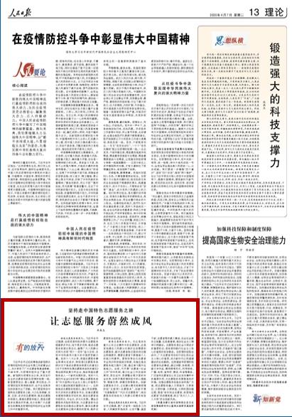 习近平总书记在统筹推进新冠肺炎疫情防控和经济社会发展工作部署会议上,充分肯定了广大志愿者等真诚奉献、不辞辛劳,为疫情防控作出了重大贡献。新冠肺炎疫情发生以来,来自各行各业的志愿者活跃在疫情防控第一线,彰显理想信念、爱心善意、责任担当,为疫情防控形势持续向好、生产生活秩序加快恢复作出了贡献。我们要坚持走中国特色志愿服务之路,大力弘扬奉献、友爱、互助、进步的志愿精神,推进志愿服务制度化,提高志愿服务能力,营造志愿服务发展良好环境,充分发挥广大志愿者在统筹推进疫情防控和经济社会发展工作中的重要作用。