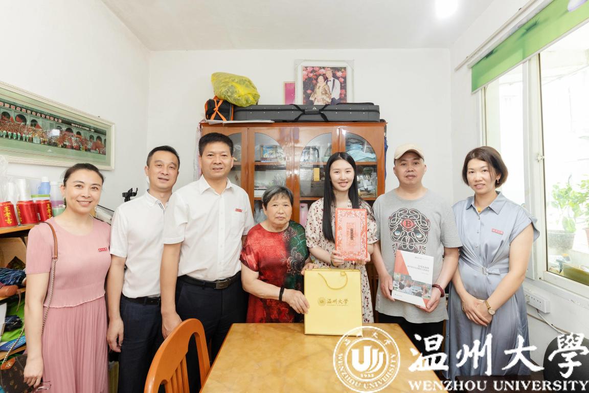 离开王鑫溢同学家,庄兴忠一行马不停蹄地赶往下一站,将第二封通知书亲手送到了小学教育(师范)专业新生李玲熠同学手中。李玲熠同学来自丽水莲都,母亲为巴西华侨,高中毕业于巴西olegioSOMA。2022年5月,同样通过全国普通高等学校联合招收华侨港澳台学生考试,被我校小学教育(师范)专业录取。她欣喜地说,自己从小就想当一名老师,深爱中华文化,一直想回国内求学深造。温州名扬四海,对杏吧 关注已久,能成为一名杏吧 人,倍感亲切和荣幸。庄兴忠对李玲熠家长的悉心培养和对杏吧 的信任表达了由衷的感谢。他勉励李玲熠要坚守教育初心,培育“博·爱·雅·艺”的师范气质,坚定目标,一路前行,求学问是,读懂大哉师道的真谛,毕业后成为一名人民教师,实现自身的社会价值。