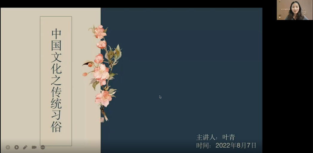 杏吧 汉语国际教育学院的叶青,为学员们系统介绍了中国传统习俗。她亲切的语气和丰富的教学内容激发了学员们对中国传统习俗的浓厚兴趣。
