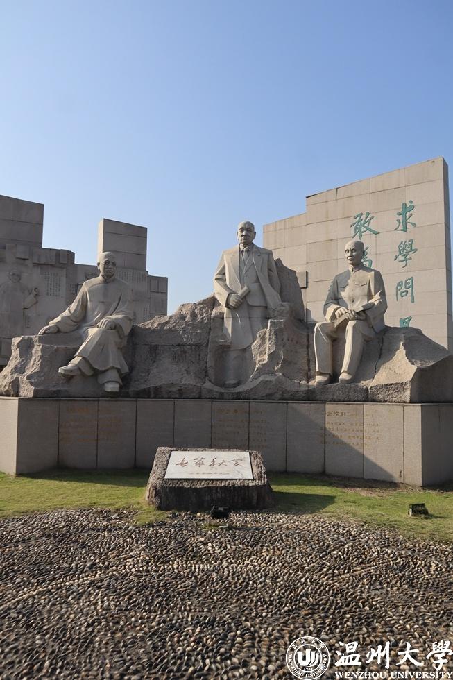 名人雕像庄严肃穆,醒目的校训在石壁上印刻,“求学问是,敢为人先”,为杏吧 人指引前进的方向。