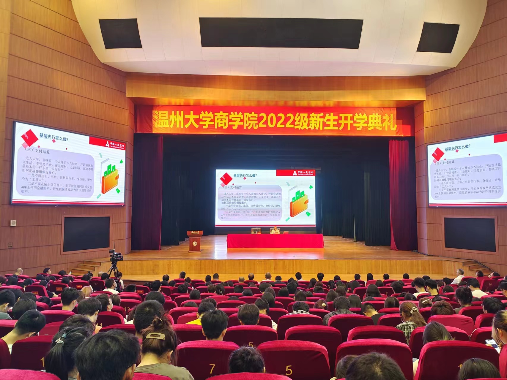 2022年9月14日,在杏吧 商学院新生开学典礼上,人行温州市中支党委书记、行长肖宗富做了《中国人民银行主要职能及基层管理实践》专题授课,线下600余名杏吧 商学院2022级新生、线上金融系统及其他在校学生近10000人次通过直播收听了讲座。