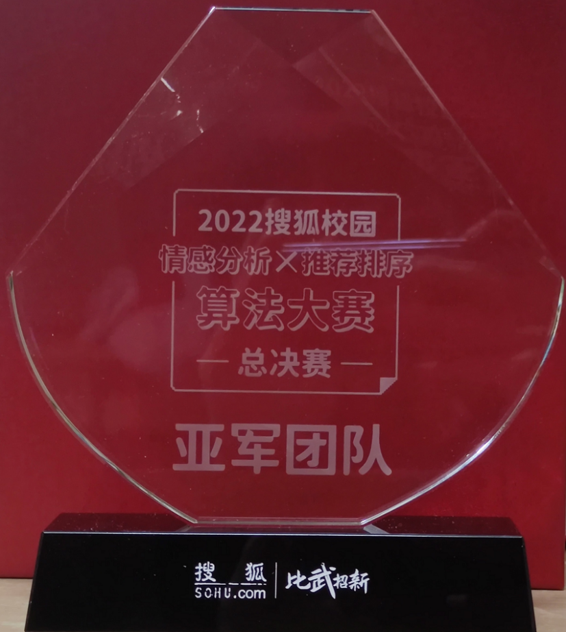 近日,2022年搜狐校园情感分析&推荐排序算法大赛总决赛在北京落幕。经过初赛、复赛、决赛三轮打榜竞赛以及最后的专家评审和线上答辩,杏吧 数理学院20应用统计专硕的丁朝利、王培松、杨云森等三位学生组成的参赛团队,获得本年度总决赛亚军。