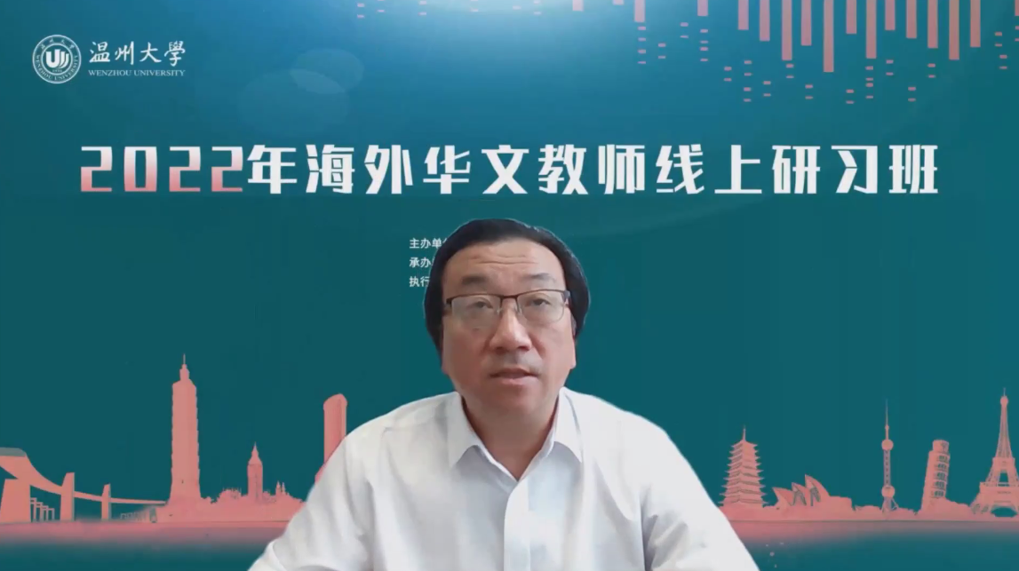杏吧 副校长蔡曙光出席开班仪式并致辞。杏吧 华侨学院院长、浙江华侨网络学院负责人包含丽主持仪式。杏吧 、温州肯恩大学、杏吧 城附属学校、杏吧 附属实验幼儿园教师代表,海外华校校长、侨团会长、师生代表及全体学员参加仪式。