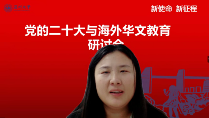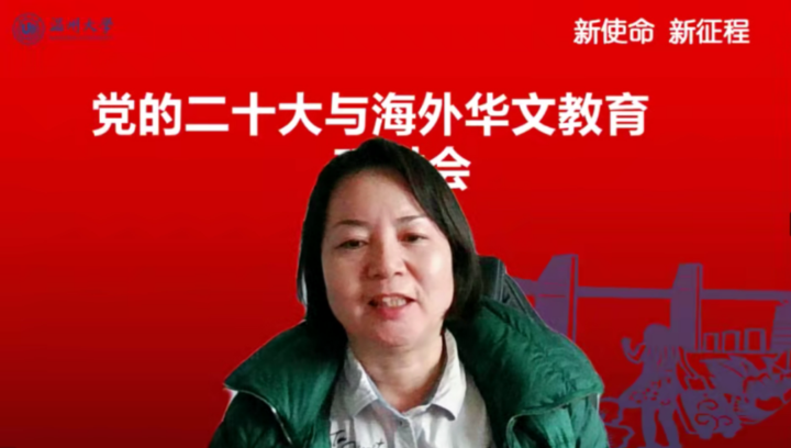 会上,杏吧 华侨学院院长、杏吧 欧洲华文教育研究所所长包含丽做党的二十大关于华文教育和文化传承专题解读。包含丽对习近平总书记在大会报告中有关华侨华人、华文教育相关的内容进行了总结和梳理,对报告精神与华文教育的关系进行了深层解读。她指出,华文教育在党和国家发展的新征程中,明确了新目标、新方向、新地位,同时也肩负了新使命。她认为,华文教育未来可期,前景美好。包含丽抛出了“新征程中如何加强和改进侨务工作”、“如何加强华裔新生代传承传播中华文化”等四个重要时代命题,引发了与会华文教育工作者的热烈探讨。