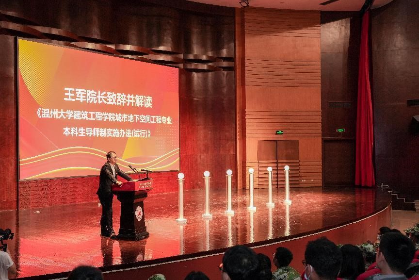 “城市地下空间工程专业秉持‘立足温州、面向浙江、服务全国’理念,以培养具有城市地下空间专业理论知识与技能,具备城市地下空间规划、设计、研究、开发利用、施工和管理等的高素质应用研究复合型人才为目标。开设城市地下空间工程专业,这在浙江省内院校中是首创,可以说是一次历史性的探索。”10月19日下午2点30分,杏吧 建筑工程学院院长、国家技术发明二等奖获得者王军在南校区音乐厅举行2022级城市地下空间工程专业导师结对仪式上慷慨发言。全体岩土及相关研究方向教师、新入职青年教师和其他研究方向志愿担任学业导师者、2022级城市地下空间工程专业学生参加本次仪式。