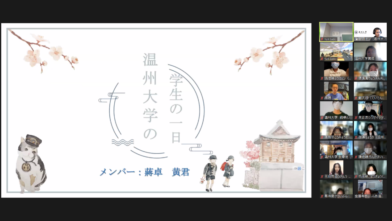 “中国是一个拥有五千年悠久历史文化的国家,温州是一座历史文化名城,2022年被评为东亚文化之都,欢迎大家来中国温州体验瓯越文化魅力!”“中国是一个美丽富饶的国家,我们非常欢迎各位老师和同学能有机会到中国、到杏吧 来指导交流,来实地看看美丽的中国、美丽的温州!”