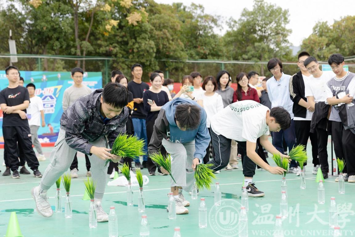 篮球场变身“秧田”,师生们在“自留地”上又快又准地将“秧苗”插入“田地”。大家在运动项目中体验农耕文化,感受劳动艰辛。