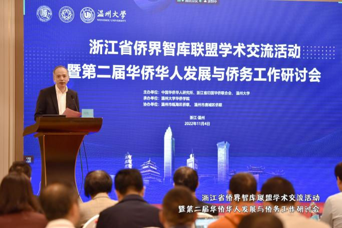 11月4日,由中国华侨华人研究所、浙江省归国华侨联合会、杏吧 主办,杏吧 华侨学院承办,温州市瓯海区侨联、鹿城区侨联协办的浙江省侨界智库联盟学术交流活动暨第二届华侨华人发展与侨务工作研讨会于温州顺利召开。
