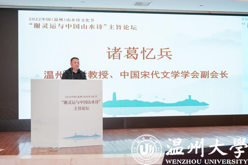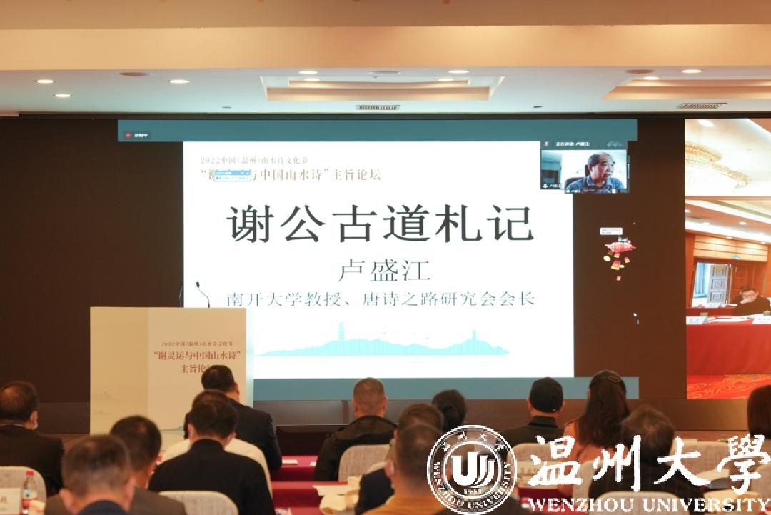 浙江大学教授、中国唐代文学学会副会长胡可先以《谢灵运与浙东诗路》为主题,论述谢灵运在石门、永嘉的山水创作,并指出谢灵运最早的山水诗作产生于他赴永嘉太守任由钱塘江赴永嘉之时,谢灵运诗是浙东诗路的渊源,浙东诗路是唐前山水诗的发源地。