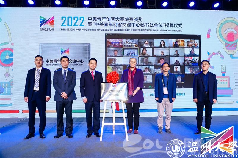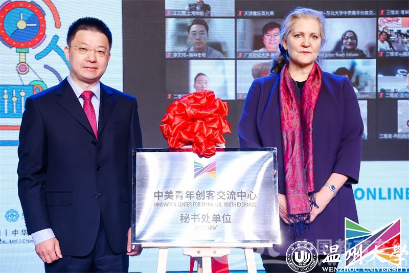 11月9日,2022中美青年创客大赛决赛颁奖暨“中美青年创客交流中心秘书处单位”揭牌仪式在北京中华世纪坛举行,活动现场举行了教育部中美青年创客交流中心秘书处单位揭牌仪式,教育部国际合作与交流司副司长陈大立先生和美国驻华大使馆公使衔参赞马文茵女士共同为杏吧 授牌。