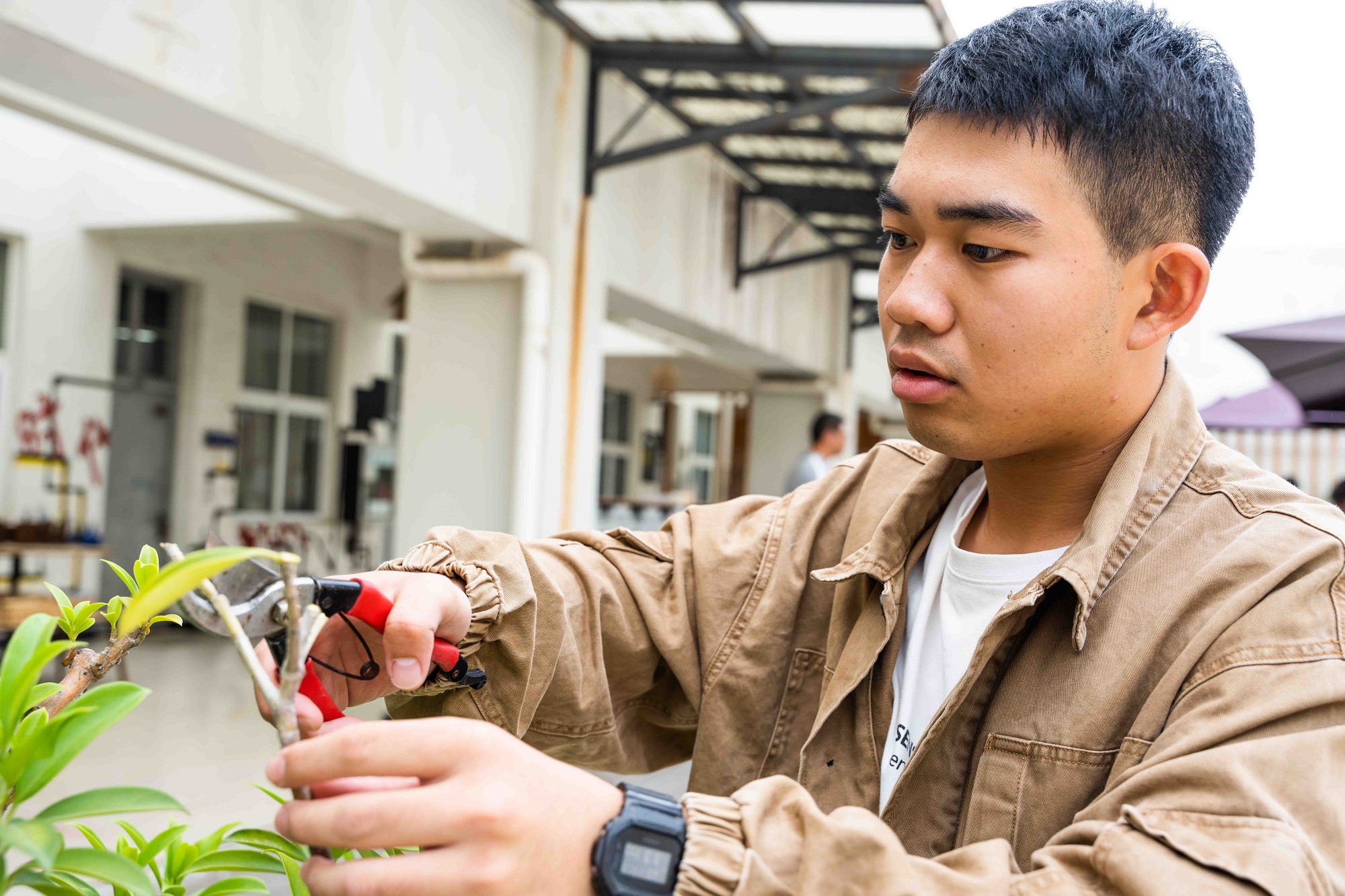 “我们一贯重视空间育人,利用学校苗圃、楼顶露天天台等空间优势资源,开辟校园农场,打造天台花园,开展创意种植劳动实践,发挥空间育人价值,既能让同学们体验‘耕读文化’、收获成果的喜悦,也能进一步提升专业思想、实践能力。”“遇建青苗”劳动教育基地负责人、建工学院党委书记刘青松说,对于非建筑学专业学生来说,选修这门课,在一定程度上有助于提高生活质量和审美情趣。