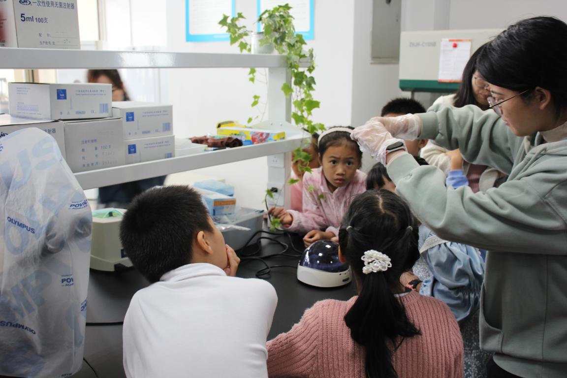 在这里,有温州市科普基地负责人金建钰老师带领的“科探空间”团队。在这里,小朋友们一路探秘神奇的生物探究实验室。在这里,我们了解PCR原理,亲自动手实践离心机操作。除了有各种高大上的精密仪器之外,实验室里还养了各种各样的“宠物宝贝”:五颜六色的小鱼、可爱的小白鼠、晶莹剔透的白玉蜗牛等,小朋友们都被这些可爱的生命迷得目不转睛!他们欣喜地围绕着小鱼和小乌龟,争先恐后地观察它们,并提出一个个小问题。