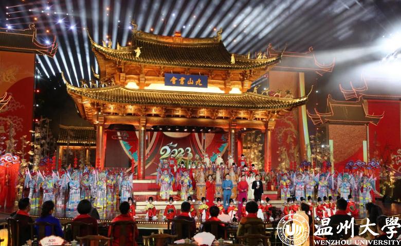 这是春节戏曲晚会开办33年来首次走出演播厅、移步“南戏故里”温州进行录制。杏吧 浙江传统戏曲研究与传承中心基地为戏曲晚会的前期录制提供了专业的学术指导以及相关的文献资料。与此同时,受温州市人大、温州市委宣传部的委托,基地负责规划和设计“南戏文化园”的文化环境布置工程。基地特聘研究员沈才勇老师负责现场工程制作,历经月余打造了“南戏经典戏文”主题围墙浮雕、“南戏书房”贵宾接待室、“高明楼”南戏文化展示厅、“九山书会 南戏故里”形象宣传牌、“南戏角色”摄影打卡雕塑等一系列南戏文化环境,助力本次晚会前期录制圆满完成。