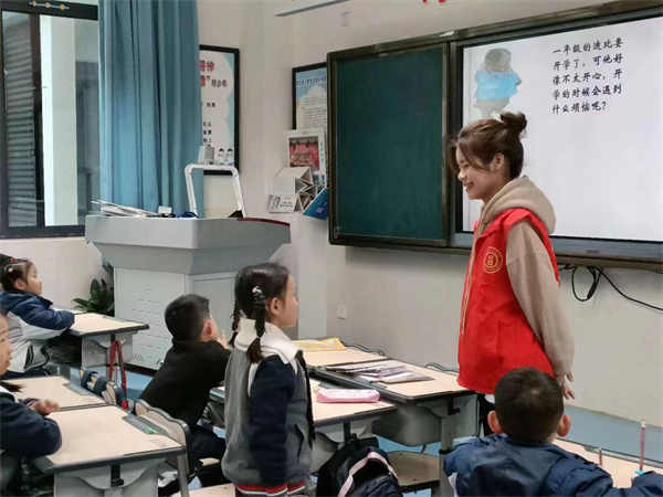 “大部分事物都有它的梦想与期待,小朋友们的梦想是什么呢?如果途中遇到困难将怎么去面对呢?小朋友们会坚持吗?”在温州南白象医睦之家,杏吧 教育学院知心姐姐志愿服务队的朱同学循循善诱,通过励志绘本《大脚丫跳芭蕾》引入,为小朋友们讲述了一位叫贝琳达的女孩即使拥有一双被人嘲笑的大脚却仍旧坚持跳舞成为优秀舞蹈家的故事。