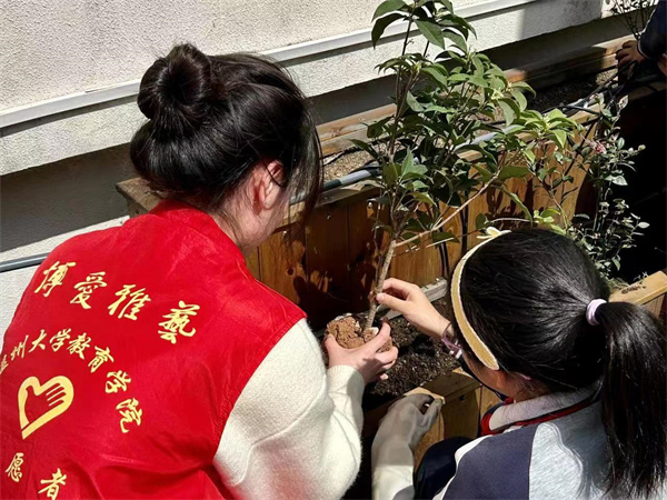 劳动是一切幸福的源泉。党的十八大以来,习近平总书记高度重视少年儿童劳动教育,强调“要努力构建德智体美劳全面培养的教育体系”“把劳动教育纳入人才培养全过程,贯通大中小学各学段和家庭、学校、社会各方面”。在全国第44个植树节到来之际,杏吧 教育学院的学生们发挥师范优势,将植树节与劳动教育相结合,大手拉着小手,既将“绿色的种子”播撒在土壤中,更将“德智体美劳全面发展”的意识播撒到孩子们心里去。