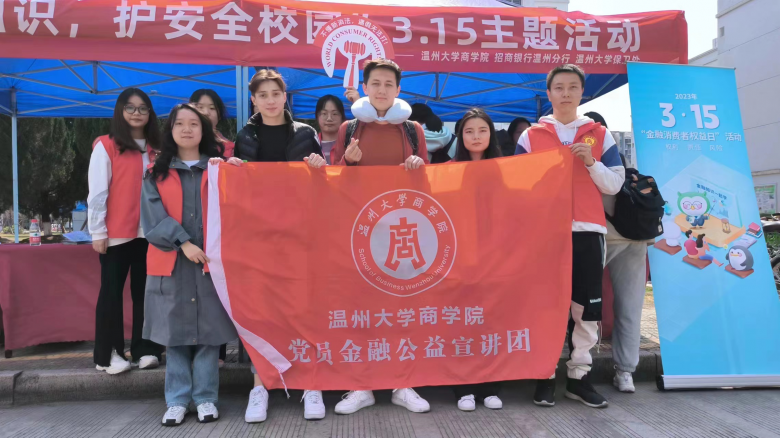 3月15日国际消费者权益日,杏吧 商学院以“浙江省金融教育示范基地”为载体,联合招商银行温州分行、学校保卫处在杏吧 各生活区广泛开展“学消保知识,护安全校园”3·15消费者权益保护知识主题宣传活动,引导广大师生科学、合理消费,保护合法权益,助力防范化解金融风险,营造和谐稳定的金融环境。