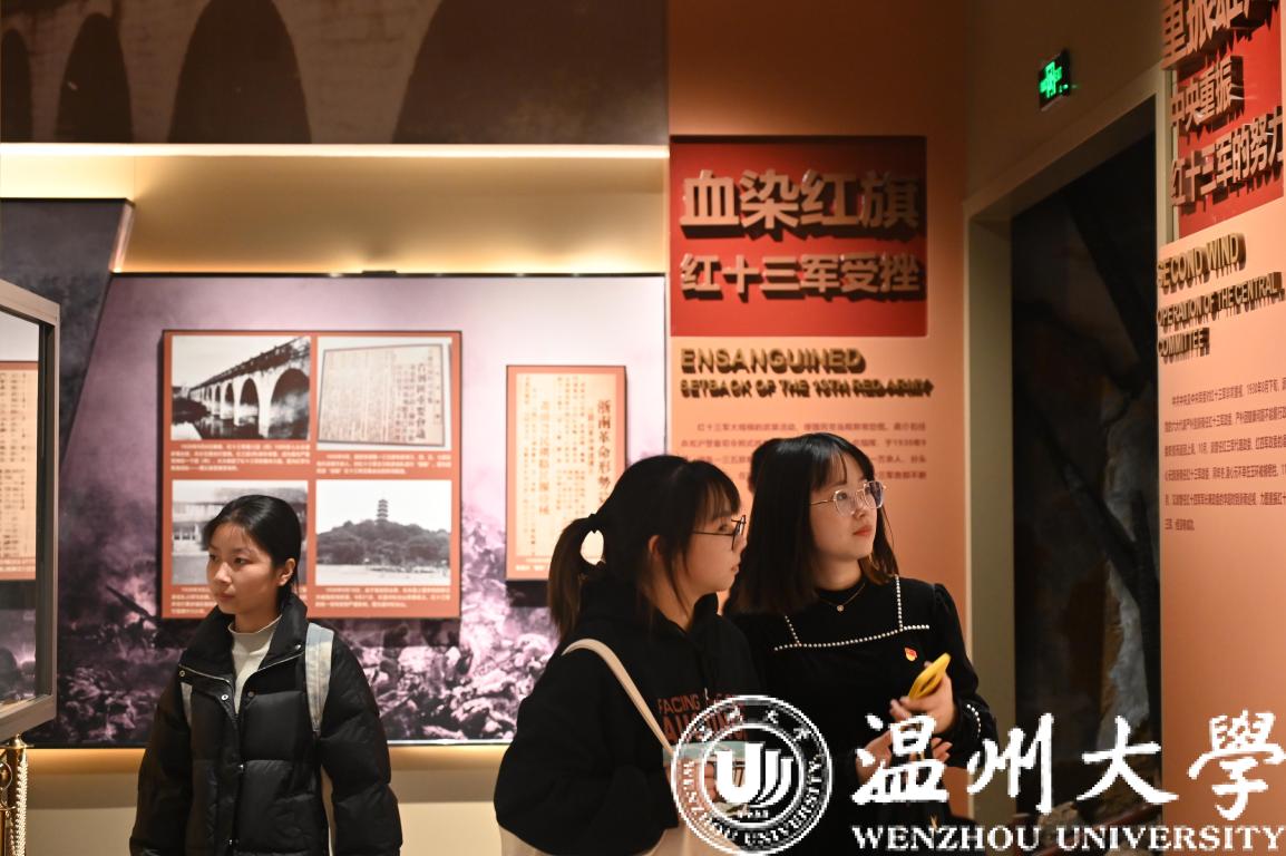纪念馆里,师生党员参观了军部旧址红军历史纪念馆内陈列着的十三军的历史资料和作战时用过的土炮、刀枪,看着那炮火漫天的油画,看着那烈士们的事迹和遗物,心潮澎湃。