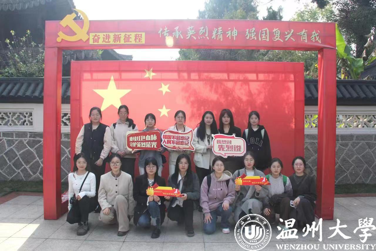 据悉,温州革命烈士纪念馆自1956年建馆以来,已历经60余载,是温州市褒扬英烈、教育后人的红色主阵地,也是温州市地标性的红色“老字号”。清明之际,缅怀之时,教育学院作为杏吧 基层团建“红色根脉强基工程”试点学院,充分利用温州红色教育主阵地作用,在基层团支部深植“红色根脉”,助力红色精神代代传。