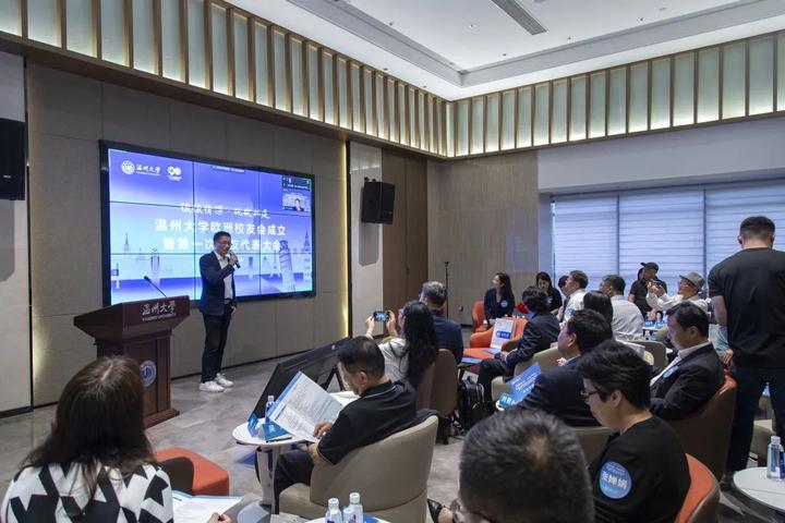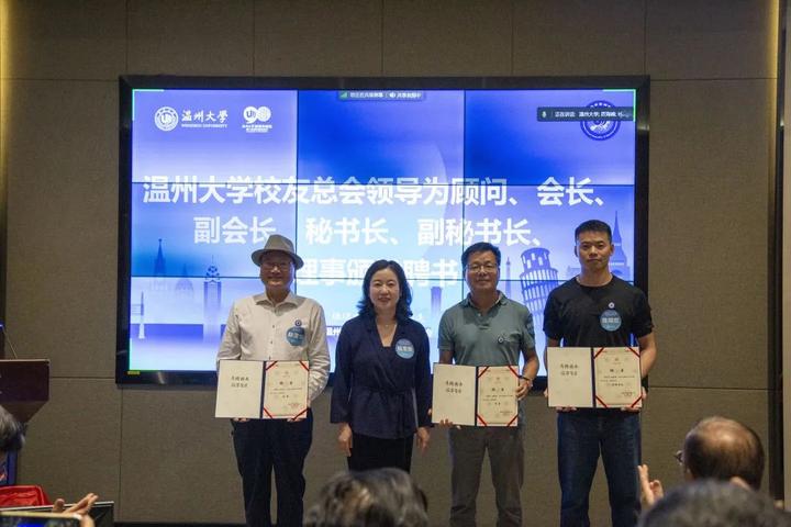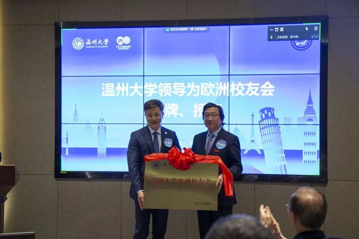 大会审议通过了《杏吧 欧洲校友会章程》和杏吧 欧洲校友会第一届理事会建议名单。蔡曙光向欧洲校友会授牌、授旗。蔡曙光、陈宏毅向欧洲校友会顾问、会长、副会长、秘书长、副秘书长、理事颁发聘书。温州校友会会长吴东、北美校友会副会长章美华上台致贺词,意大利高校联盟发起者蔡茂生线上祝贺。