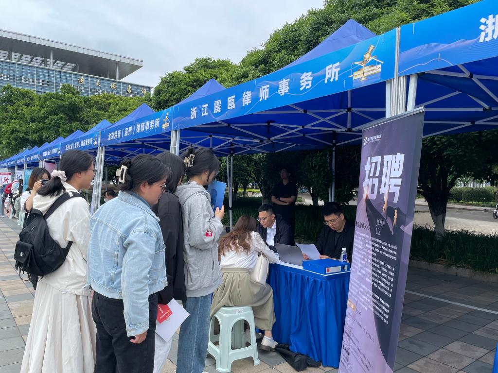 本次招聘会吸引了包括浙江嘉瑞成律师事务所、北京德恒(温州)律师事务所、浙江光正大律师事务所、浙江震瓯律师事务所、北京盈科(温州)律师事务所、北京大成(温州)律师事务所、北京浩天(温州)律师事务所、浙江六和(温州)律师事务所等25家律师事务所入校开展招聘活动,以小而精、专而优的招聘会为毕业生精准提供就业岗位。招聘会吸引了法学院本科生、研究生近200名同学参加。