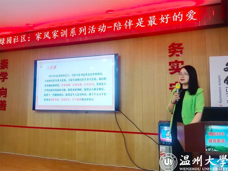 “孩子最渴望的、最好的礼物其实就是家人的陪伴。或许是爸爸与孩子嬉戏打闹,或许是与妈妈的一起做手工,或许是晚上父母坐在身边讲故事,或许是和全家人一起外出野餐……”近日,温州市家庭教育服务进社区家风家教系列活动进文化礼堂走进蒲鞋市街道绿园社区,杏吧 教育学院教育系支部书记、杏吧 家庭教育研究院院长、杏吧 家庭家教家风讲师团团长、浙江省妇女儿童发展智库专家、温州市家庭教育学会副会长周奇教授为家长们开展《陪伴是最好的爱》家庭教育公开指导课。