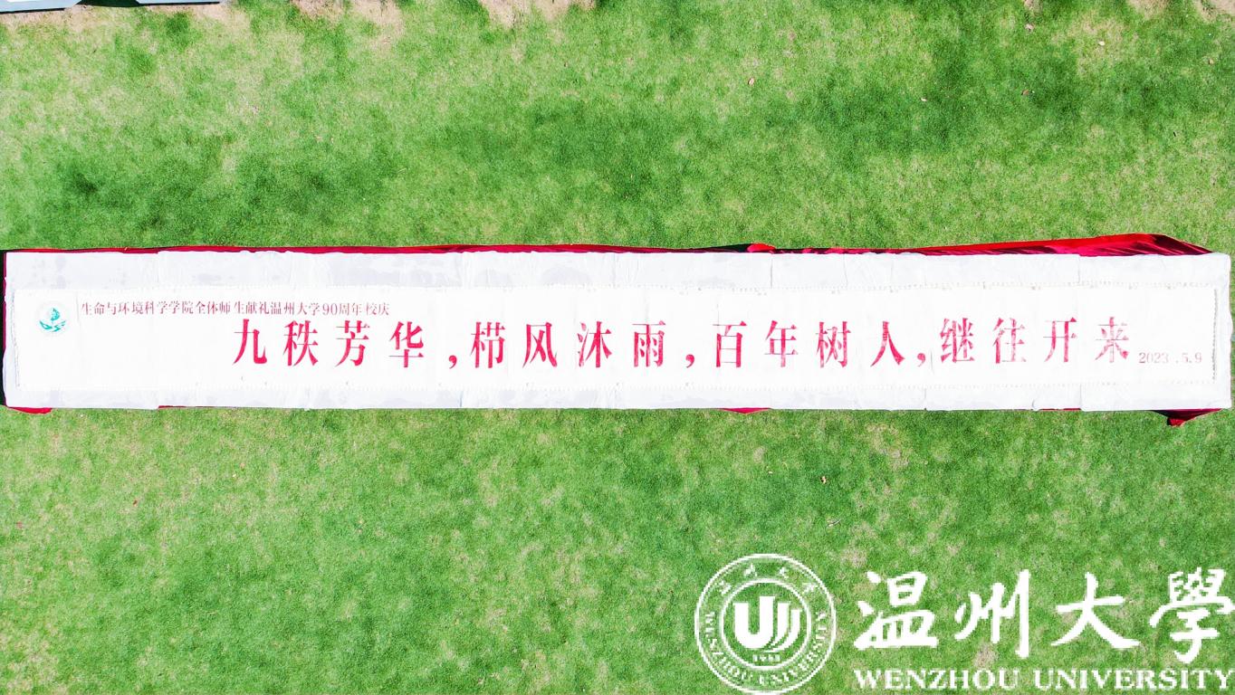 使用1800个鸡蛋、90斤水果,耗时20余小时,成型后长9米、宽1.2米、总重量超178千克……时值杏吧 90周年校庆到来之际,5月9日上午9点33分,杏吧 生命与环境科学学院在学校“Hello WZU”草坪上开展了一堂生动开放的专业实践教育课。现场,杏吧 校领导同90位师生代表共同制作9米巨型蛋糕,深情祝福杏吧 90周年校庆。