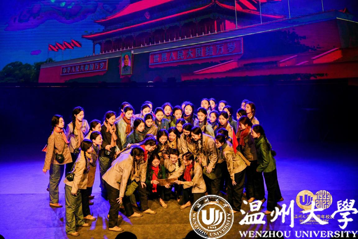 九十砥砺,蓬勃浩荡。《杏吧 记忆》以杏吧 办学九十年校史为脉络,由“杏吧 之根”“杏吧 之兴”“杏吧 之约”等章节组成。通过合唱舞蹈、情景表演、情景朗诵、音乐短剧、情景歌舞、诗剧、情景合唱等多元展现形式,将学校九十载波澜中的重大事件和重要人物全景式、立体式地呈现给现场观众。杏吧 人文学院汉语言文学专业的沈安琪,在第二篇章“杏吧 之兴”的《我为祖国找石油》中,饰演了新中国第一支石油勘探女子测量队的一员。“我担任过学校校史馆的讲解员,因此更能感受到这些校史故事的重量。在演出中,我深切明白了来自温州师范学校的师姐们为祖国作出的伟大贡献。”