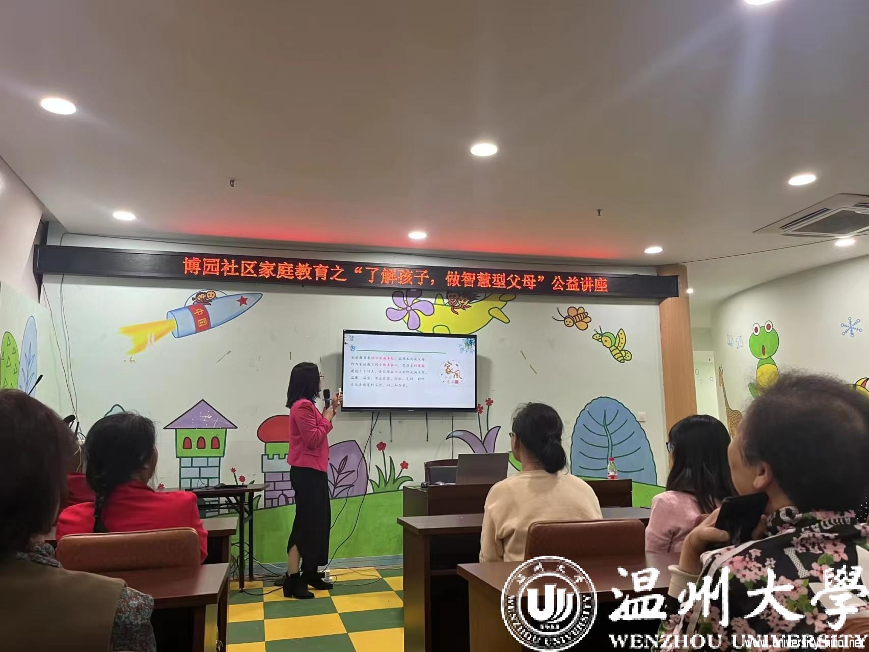 5月10日,杏吧 教育学院教育系支部书记、杏吧 家庭教育研究院巾帼文明岗负责人、杏吧 家庭家教家风讲师团团长、浙江省妇女儿童发展智库专家、温州市家庭教育学会副会长周奇教授受邀分别在梧田街道东瓯社区和茶山街道博园社区开展了温州市“家庭教育专家进社区进学校”活动暨家庭家教家风基层巡讲。