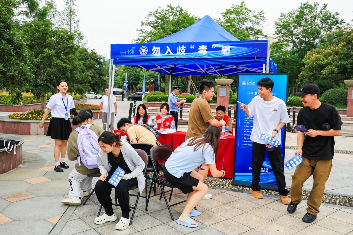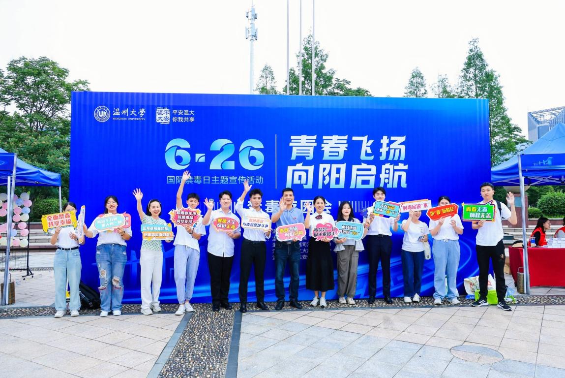 为全面营造全民禁毒宣传月活动氛围,助推温州市“全国禁毒示范城市”创建工作,进一步增强在校学生识毒、防毒、拒毒、禁毒意识,在第36个“6·26”国际禁毒日来临之际,杏吧 保卫处联合法学院开展“青春飞扬,向阳启航”——禁毒主题游园会,活动吸引了温州各大高校学生广泛参与。