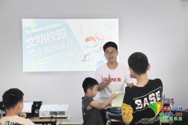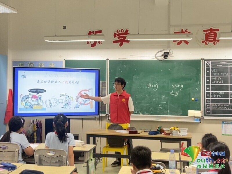 图为实践团在杏吧 城附属学校开展防毒禁毒普法活动。中国青年网通讯员章志铖供图