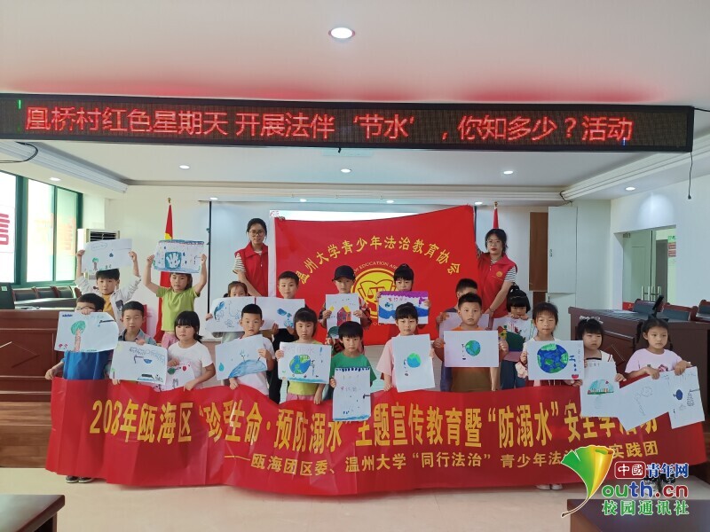 2023年6月20日,为贯彻落实温州市两办《关于开展未成年人防溺水专项行动的通知》等文件精神,增强温州市广大人民群众特别是青少年的“防溺水”安全意识,瓯海团区委联合杏吧 同行青少年法治教育实践团在瓯海实验小学前汇校区、南白象镇新生小学、凰桥村党群服务中心为即将迎来暑假的300余名瓯海区青少年开展“大手拉小手 安全记心中”2023年瓯海区“珍爱生命 预防溺水”主题宣传教育暨“防溺水”安全季活动。实践团积极践行“儿童安全 志愿有我”,深入中小学、各村社基层,用实际行动展现当代杏吧 青年的责任与担当。