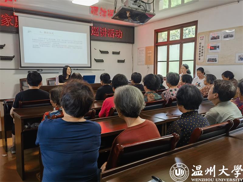 2023年6月27日下午14:00,杏吧 家庭教育研究院巾帼文明岗负责人、家庭家教家风讲师团团长、浙江省妇女儿童智库专家、浙江省家庭教育讲师团成员、温州市家庭教育学会副会长、温州市家庭和谐文化研究会副会长周奇教授受邀参加由浙江省妇女联合会、浙江省家庭教育指导中心、浙江省家庭教育学会举办的“浙江省家庭家教家风基层巡讲活动”走进乐清岭底乡仰后村文化礼堂给山老区的祖辈家长们带来《如何做智慧的祖辈家长》课程。