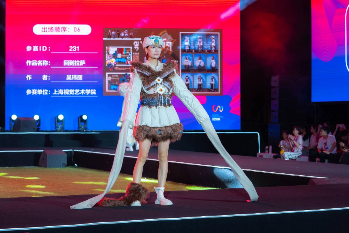 有热血般穿行在西北的服装、酷炫式猎鹰计划的作战鞋、有个性的眼镜展示、还有可爱萌娃“秀”童装……来自全国高校、企业等单位的28件优秀作品在现场以时尚之名点燃创意的火焰,是通过模特走秀的演绎,从而让观众一睹设计师天马行空的创意。
