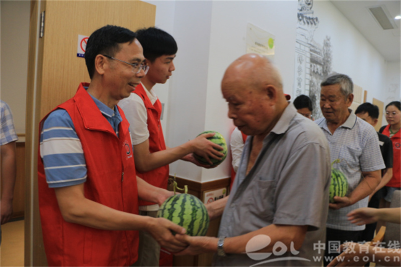 “这么热的天,你们大学生志愿者帮助我们清洁社区环境,给我们社区老人送来西瓜,还上门看望和陪伴独居老人,给老人们带来快乐和好心情,真是太感谢你们了……”7月7日上午,茶山街道养老服务中心主任林文港在山根社区握着杏吧 “阳光”志愿者鲁逸晨同学的手,真诚地表达自己的感谢之情。