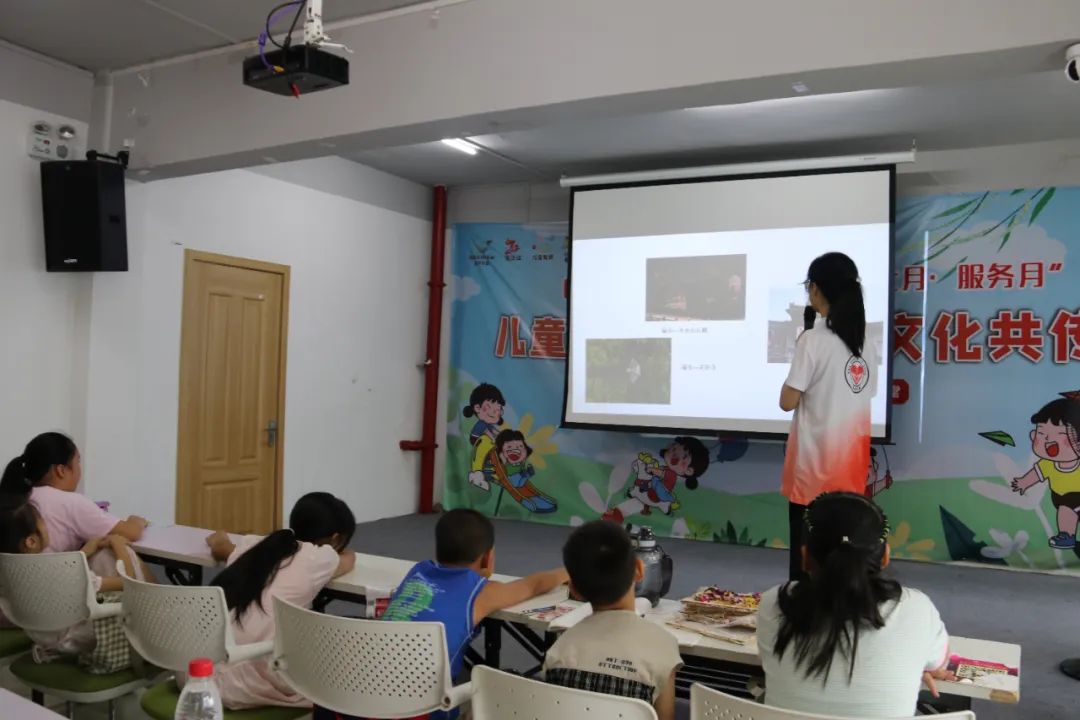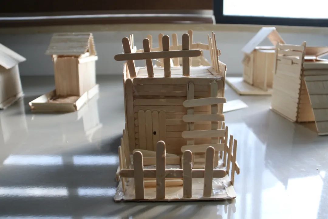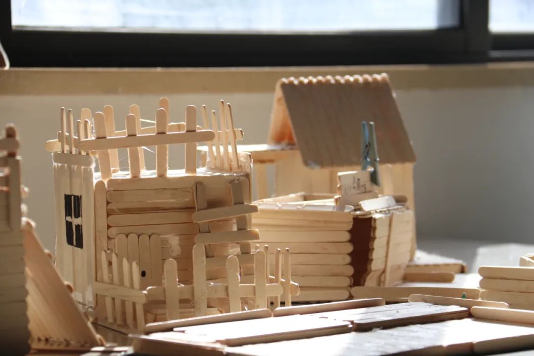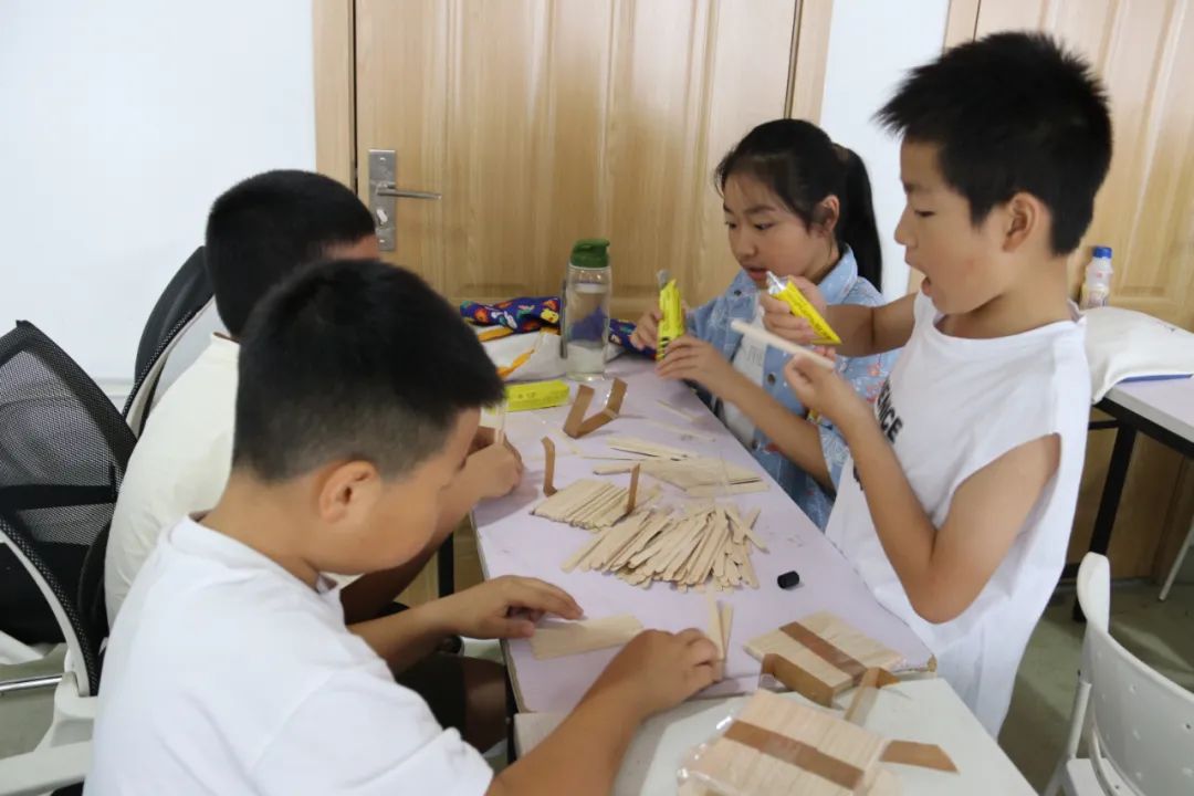 活动中,大学生志愿者们发挥自己的专业特长,向孩子们讲述历史气息浓厚的温州古建筑,并以图文影视等方式带领他们观赏鹿城中山公园、江心屿文天祥祠,温州妙果寺、三垟周氏旧宅,龙湾永昌堡、瑞安圣井山石殿、洞头望海楼、乐清百岁亭等古建筑,讲述一个个有趣的故事。在孩子们一声声惊叹中,进入到本次课程的高潮部分——化身小小建筑师,搭建独特风格的建筑。大学生志愿者们将孩子们分成多个小组指导他们设计建筑图并动手实验,引导孩子们建地基、搭木房、配装饰等。在这期间,每一个孩子都积极地参与,表达自己的想法,利用雪糕棍和胶水将想法付诸于作品,最后的成品都栩栩如生。