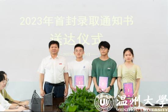 座谈会上,庄兴忠向春晖中学优秀毕业生、被杏吧 提前批师资定向小学教育(师范)专业录取的冯一坚、马艺嘉、邵思嘉送上了杏吧 2023年首批录取通知书。谈及志愿选择时,他们均表示,受到家庭教育的熏陶和身边老师的影响,成为教师是他们从小的梦想。