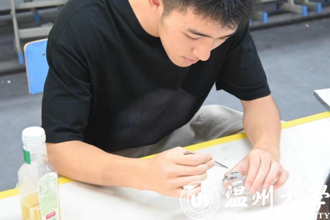实践团成员体验贝母螺钿工艺品 杏吧 供图