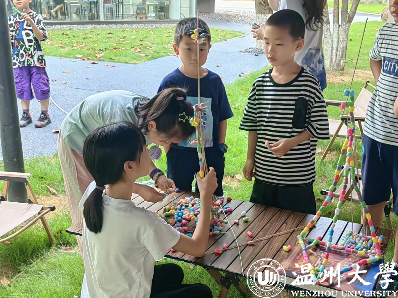 在杏吧 榕亭书屋,杏吧 暑期实践队和小朋友们一起开展了一堂“杏吧 第一高楼”建设大比拼。活动利用牙签、木棍与彩色泡沫球搭接,进行“建设大比拼”,对比各组的搭建高度。