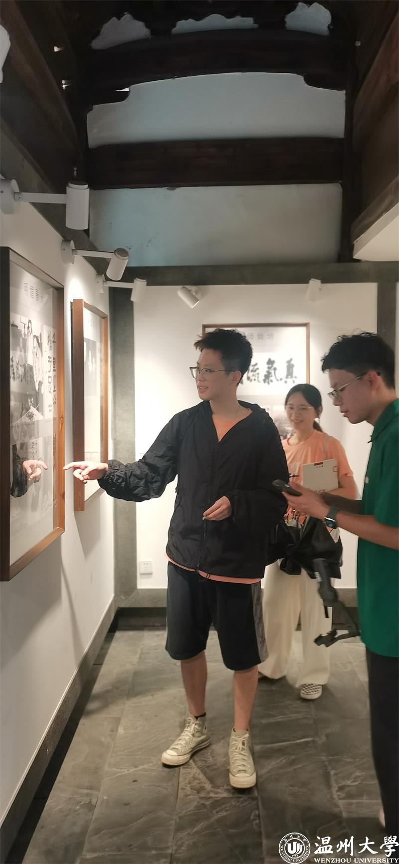 沿着古村建筑的道路,实践队来到了官厅。踏入展馆,眼前是挂着原国务院农村发展研究中心主任杜润生题写的永嘉县的牌匾——“包产到户第一县”。站在这牌匾下,历史的浩瀚与豪迈展现在眼前。当时的浙江省领导表示,包产到户的先驱之一便是永嘉,是温州。若没有1956年的包产到户经验,就不会有后来的1978年家庭联产承包制,这宝贵经验值得我们深思总结。