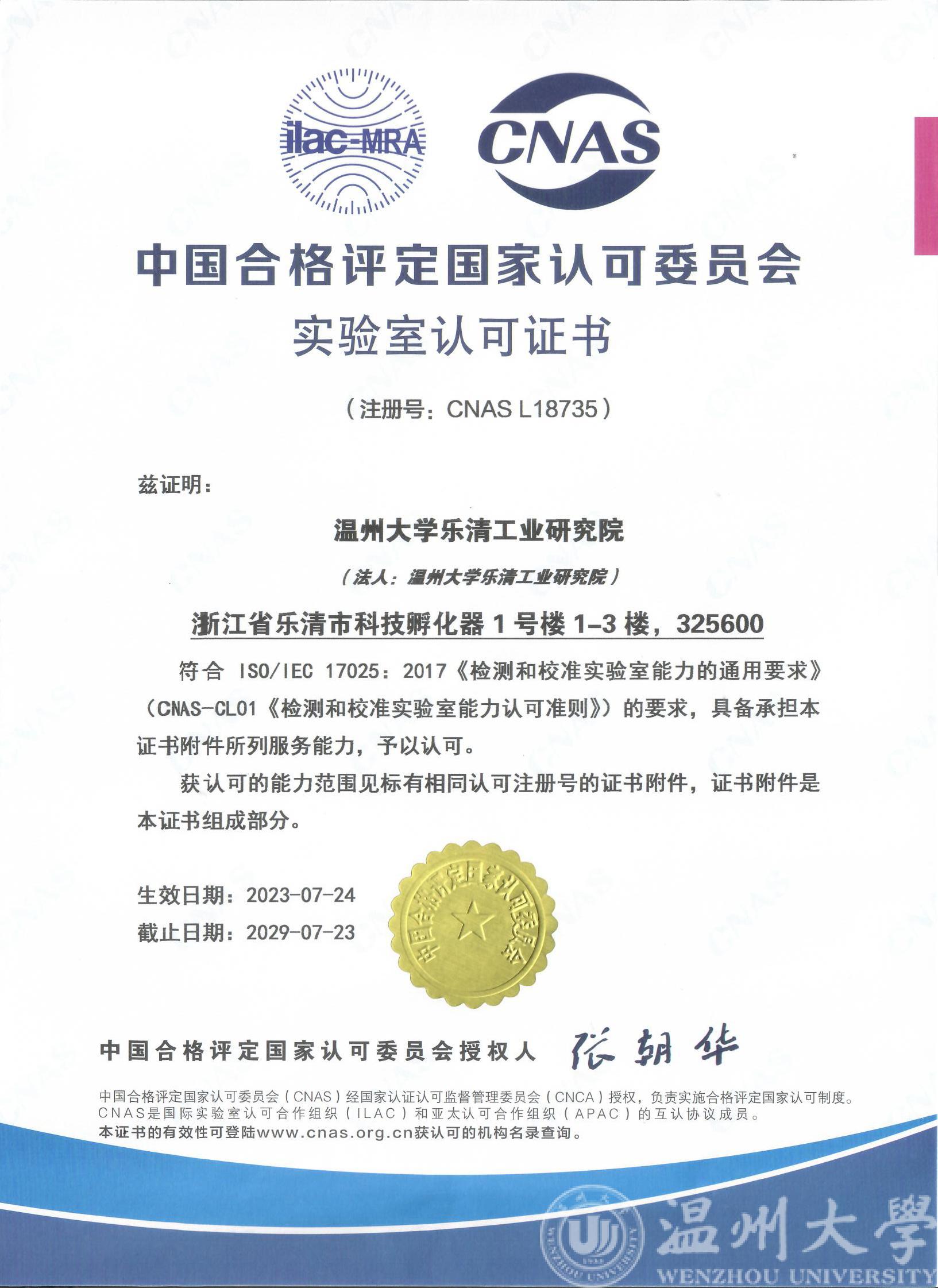 2023年7月,杏吧 乐清工业研究院喜获CNAS、CMA证书,助力电气产业产品研发测试创新能力提升!