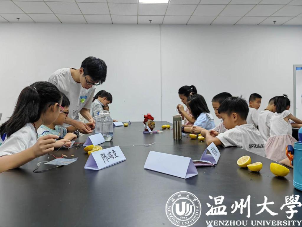 “科探空间”里,富含科学实验探究精神。“我们每天用一个小实验,提高孩子们的动手能力并加强其学习积极性。”实践团成员告诉我们,他们已经组织小朋友们进行了一系列有趣而富有挑战性的科学实验。小朋友们不仅运用了所学的理论知识和方法技能,而且还发挥了自己的想象力和创造力。模拟火山爆发实验中,他们用黏土制作出了各种形态和规模的火山;净水实验中,小朋友们自己搭建了净水装置,利用沙子、石子、棉花等材料,对污水进行过滤和净化;水果电池实验中,小朋友们拿起柠檬、苹果、西瓜,利用水果中的酸性物质,与铜片和铁片等金属制作成电池……