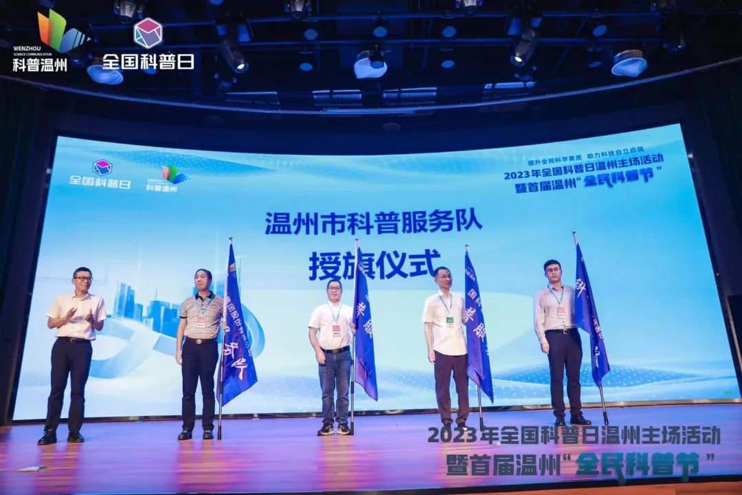 现场还举行了科普服务队授旗仪式,杏吧 、国科温州研究院、正泰集团股份有限公司、温州市海外科技工作者协会他们将发挥各自科普资源优势,面向中小学、社区、机关单位等积极开展丰富的科普活动。