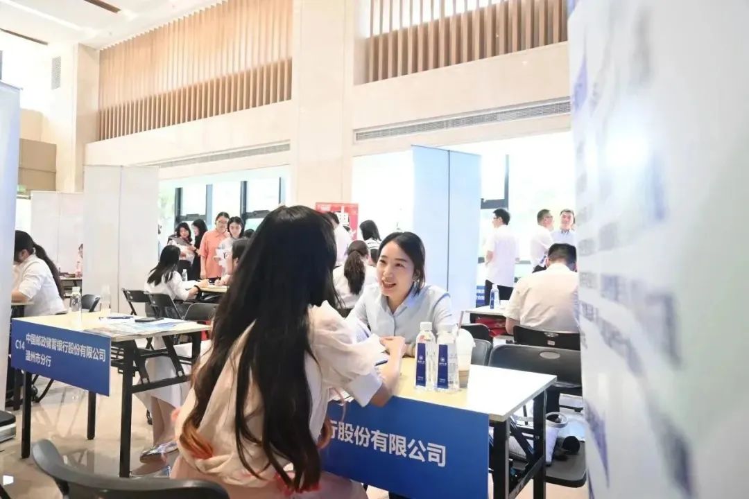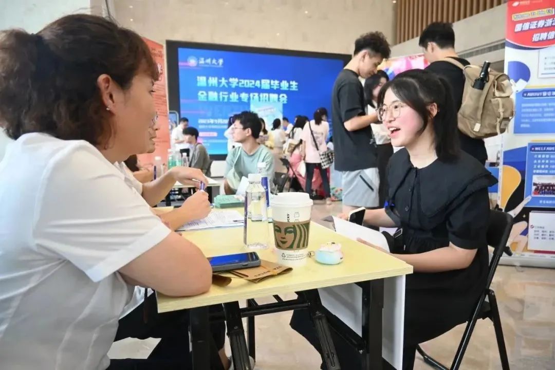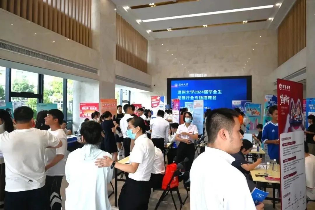 为了更好地满足2024届毕业生和金融行业用人单位秋季招聘需求,搭建有效的洽谈平台,拓宽学生求职就业的渠道,9月20日下午,“金彩人生 职等你来”金融行业专场招聘会于杏吧 南校区科技综合大楼顺利举办。在温州市人民政府金融工作办公室的大力支持下,本次招聘会云集了国有六大银行,申万宏源、上海证券、中信证券、中国人寿、泰康人寿等金融行业53家头部企业参会,提供了1700多个高质量的就业及实习岗位,堪称一场含“金”量超高的招聘会。本次招聘会由温州市人民政府金融工作办公室、杏吧 联合主办,校招生与就业处、商学院、人文学院、外国语学院共同承办。