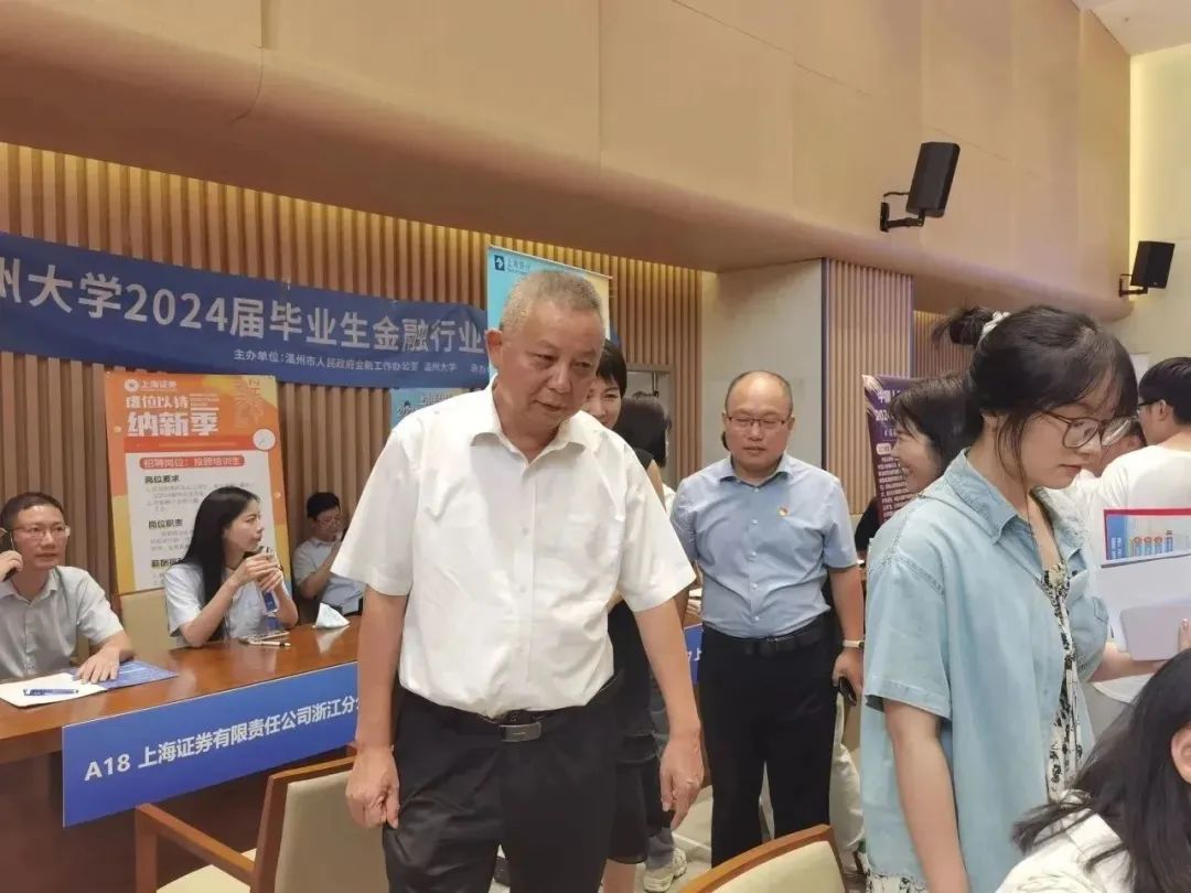 温州市金融办合作服务处副处长陈天同、杏吧 招生与就业处处长蔡锋、杏吧 商学院院长胡振华、党委书记李密等相关单位负责人及各学院就业辅导员来到现场,细致了解各招聘单位的岗位设置、招聘人数、薪酬待遇等情况,与参会的毕业生同学们亲切交流,询问同学们的求职情况及求职意愿,并给予悉心指导和耐心解答。