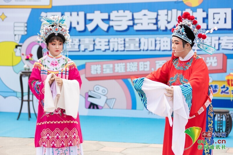 舞台区内,吉他协会、国标舞社等10余个学生社团带来的节目为现场的同学传递着青春的活力与能量,而由杏吧 红楼戏曲社、朗诵协会等学生社团带来的《打金枝》《红色的括苍山》等节目,则是让同学们沉浸式感受到中华优秀传统文化魅力及浙南浓厚的红色文化基因。