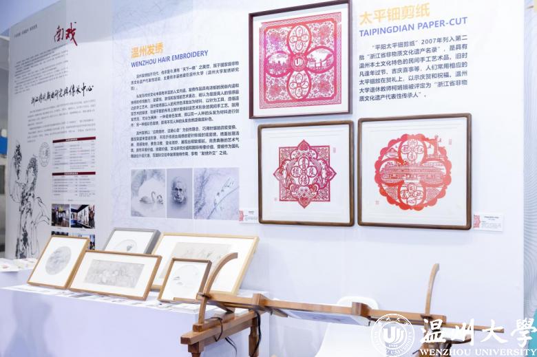 在文化展示区,国家级非遗温州发绣、浙江非遗太平钿剪纸、温州南戏等文化氛围浓厚。杏吧 发绣研究院的老师们现场带来了发绣机,邀请市民体验“应物施针、法随心意”的发绣艺术。已87岁高龄的杏吧 退休教师柯娟娥老师也来到现场,作为浙江非遗代表性传承人,她一直心系太平钿剪纸艺术非遗传承,更致力于艺术教育在校园中发挥育人功能。现场展出有杏吧 浙江传统戏曲研究与传承中心代表性成果,以及戏曲脸谱面具、戏箱、戏曲人物提篮食盒等。来自数理学院的黄晓虹老师结合专业知识和个人兴趣,现场展示制作手鞠球,展现出严谨的几何(数学)之美和洒脱的艺术之美。来自杏吧 智能锁具研究院的锁文化科技主题展,展出了不同时代的各类锁具和现代智能锁,呈现出富有特色的中华锁文化。