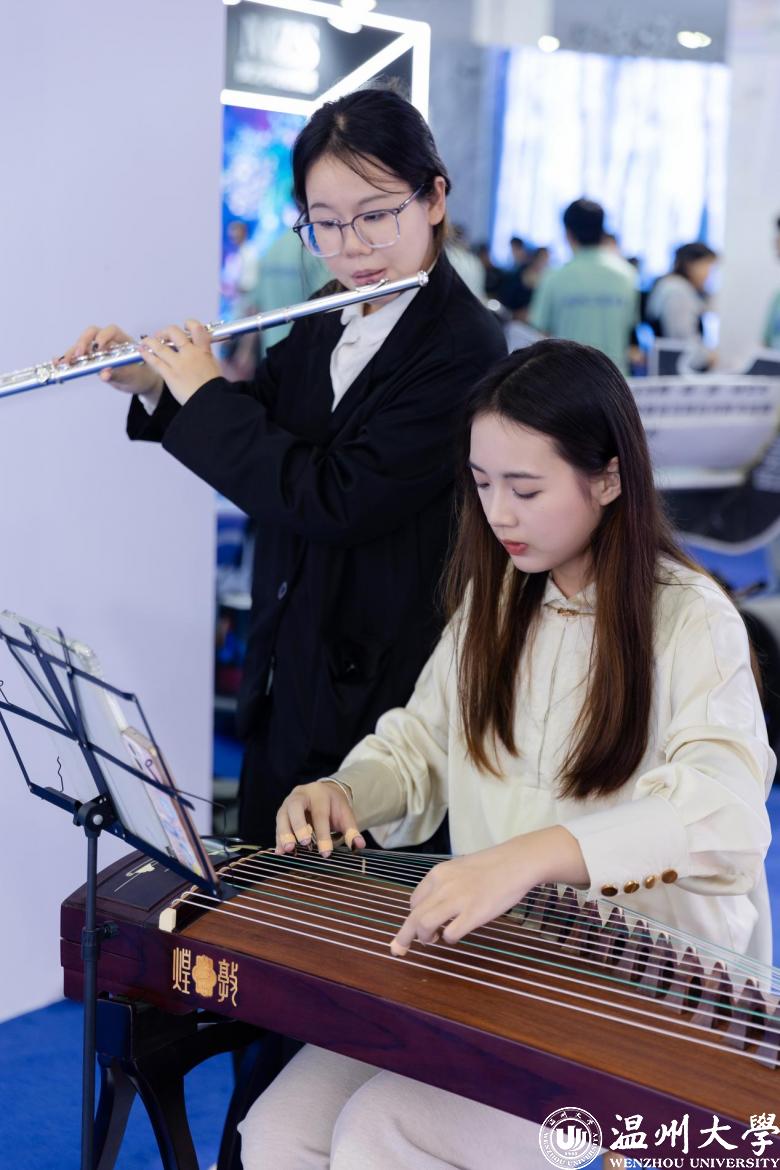 美术与设计学院的“数智”融创系列艺术设计作品。作品通过运用数字化工具和技术,将传统的时尚设计与现代科技相结合,呈现出独特而富有创意的艺术形式,为观众带来了全新的视觉和感官体验。现场还有来自音乐学院的学生们为市民带来乐器演奏,来自校团委的志愿者讲解员热情地为市民介绍各项目特色,展现出杏吧 青年风采。