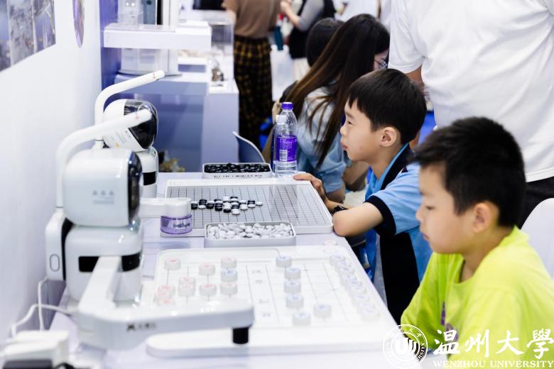 “快看!那个机器人会用毛笔写字,还有个机器人会下棋!”“哇,这辆赛车好酷!”……机电工程学院师生自主研发的魔术师书法机器人、Robocon投环机器人和疾风车队赛车,计算机与人工智能学院研发的动作捕捉系统,杏吧 元宇宙与人工智能研究院研发的VR展示-温州朔门古港及宋代园林和下棋机器人等作品科技感满满,吸引了众多市民参与体验。